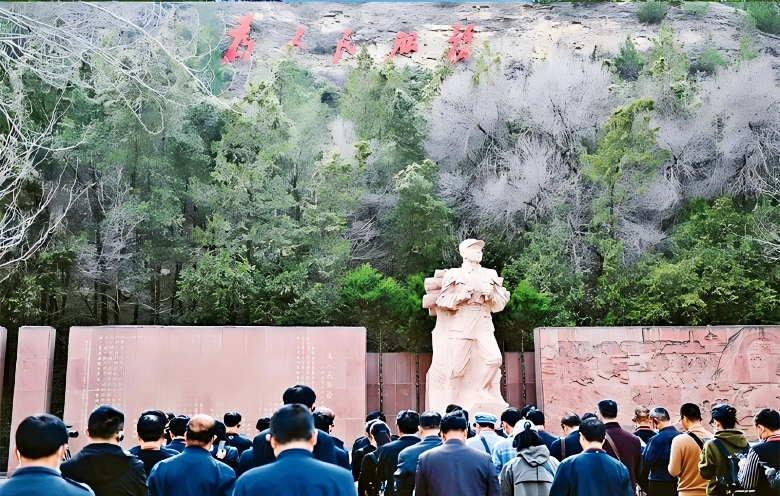 1944年9月,毛泽东同志在中共中央警备团追悼张思德的会上发表《为人民服务》讲演,指出“为人民利益而死,就比泰山还重”。从“全心全意为人民服务”的根本宗旨到“为民造福是最大政绩”的时代要求,中国共产党人为民初心始终如一。图为党员、干部在陕西延安枣园《为人民服务》讲话纪念广场进行现场教学活动。 新华社记者 张博文/摄